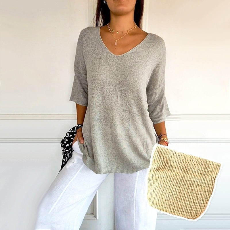 Anjela – Lässiges Strickhemd Mit V-Ausschnitt