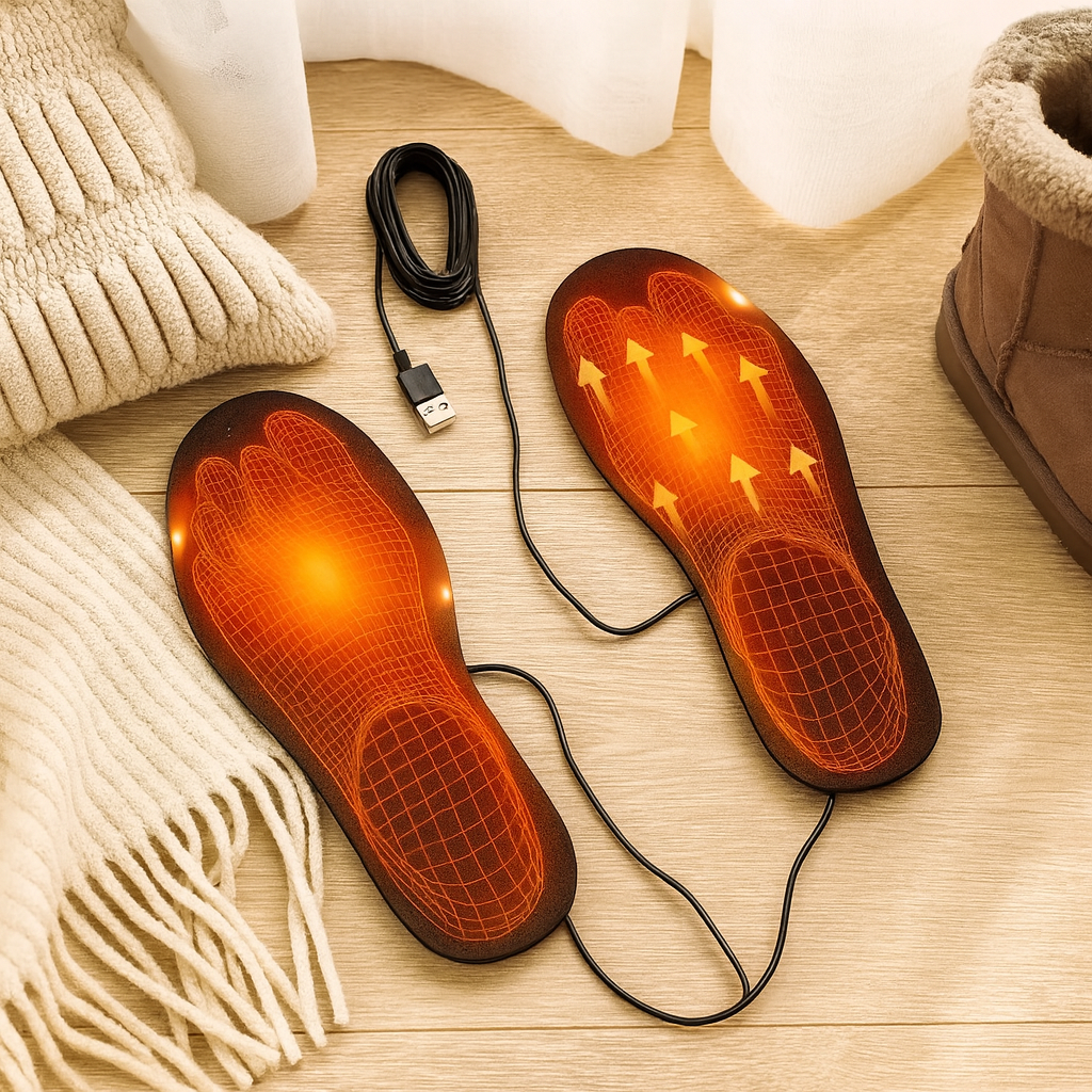 Halten Sie Ihre Füße mit Auralith | Adaptive beheizte Einlegesohlen warm und voller Energie. Entwickelt für Komfort bei jedem Schritt, schenken diese Einlegesohlen angenehme Wärme und passen sich flexibel an. Ideal für Skifahren, Camping, Pendeln oder entspannte Winterspaziergänge ohne kalte Füße.