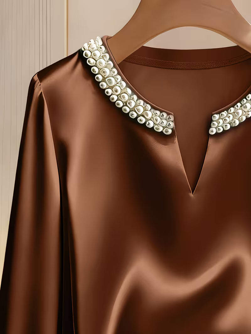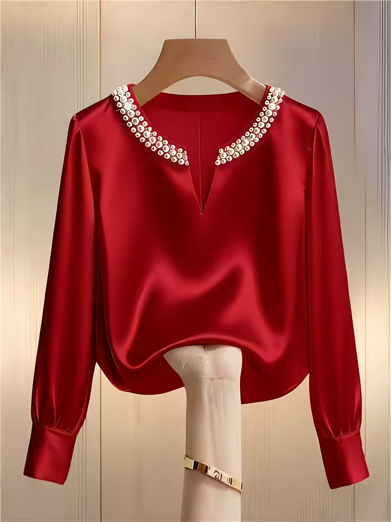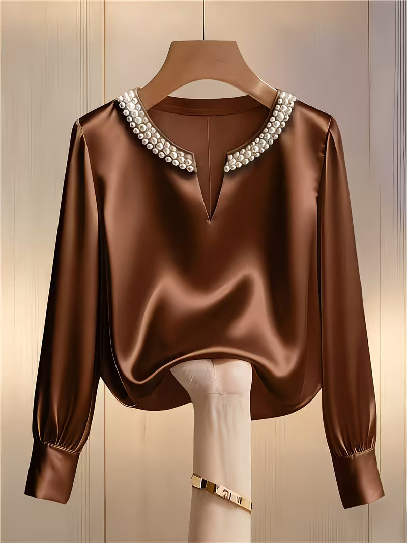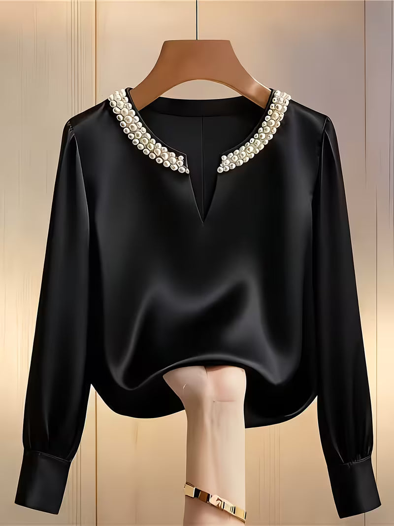 Elegantes Langarm-Perlenhemd für die Arbeit und besondere Anlässe!
