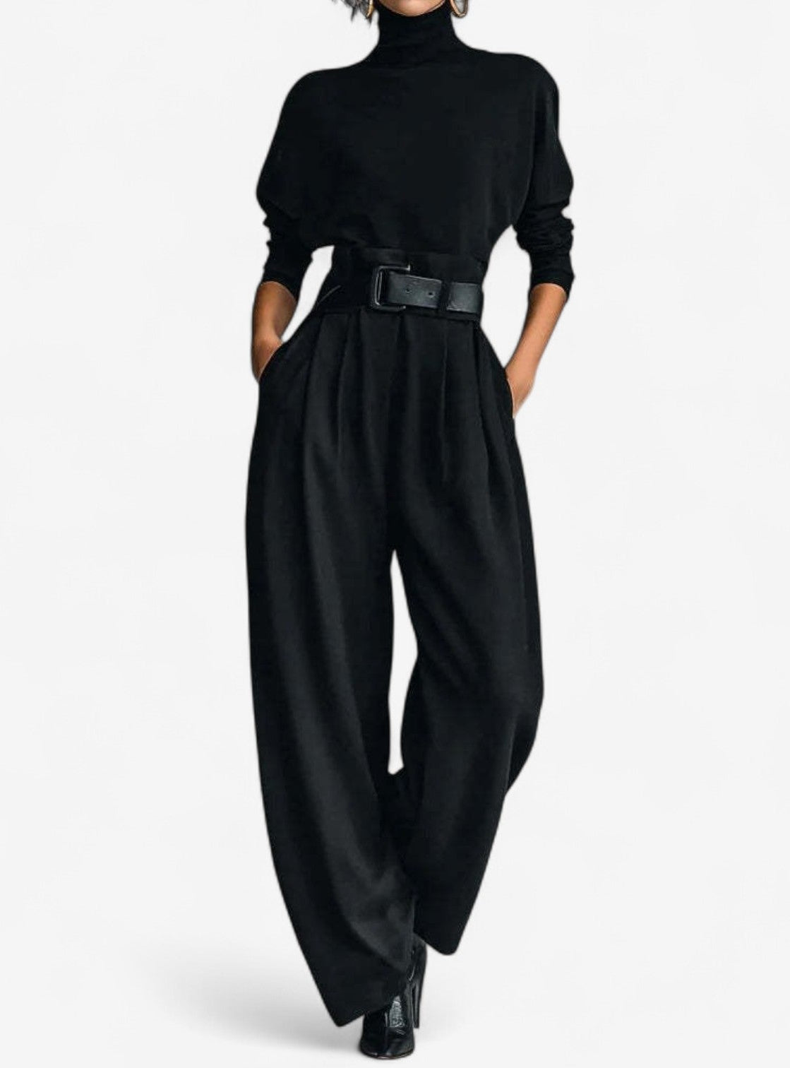 Der Doris™ Jumpsuit bietet eine moderne Raffinesse mit einer schlanken und skulpturalen Silhouette. Entworfen mit einem hohen Kragen, einer schmalen Taille und weiten Beinen, vereint er kraftvoll Struktur und Eleganz. Hergestellt aus hochwertigen Stoffen, passt dieses Kleidungsstück perfekt zu professioneller Eleganz und Abendcharme.