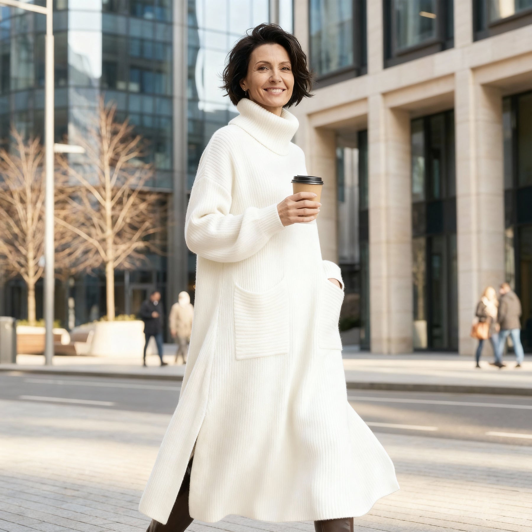 Glenda™ - Damen Oversize Strickkleid Rollkragen