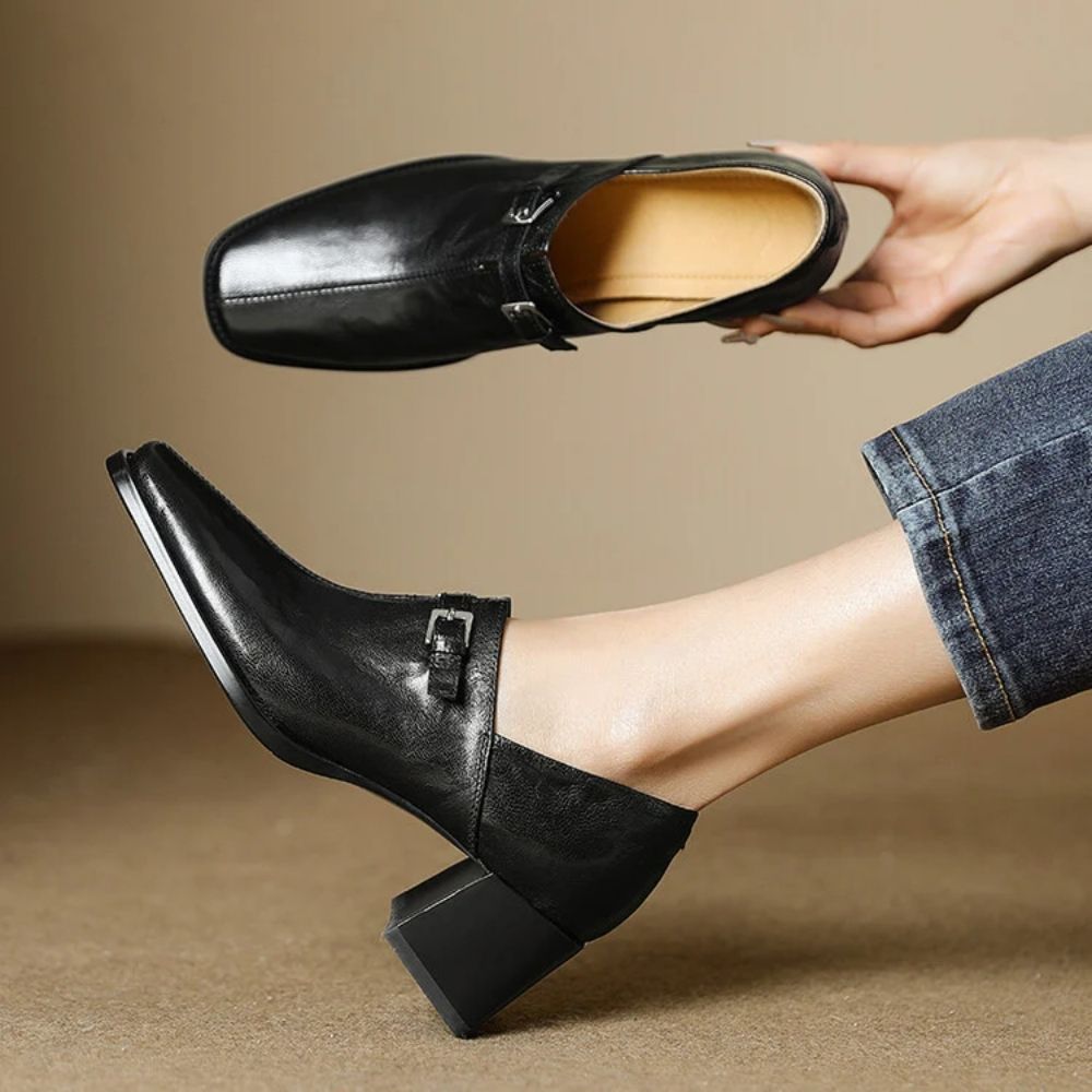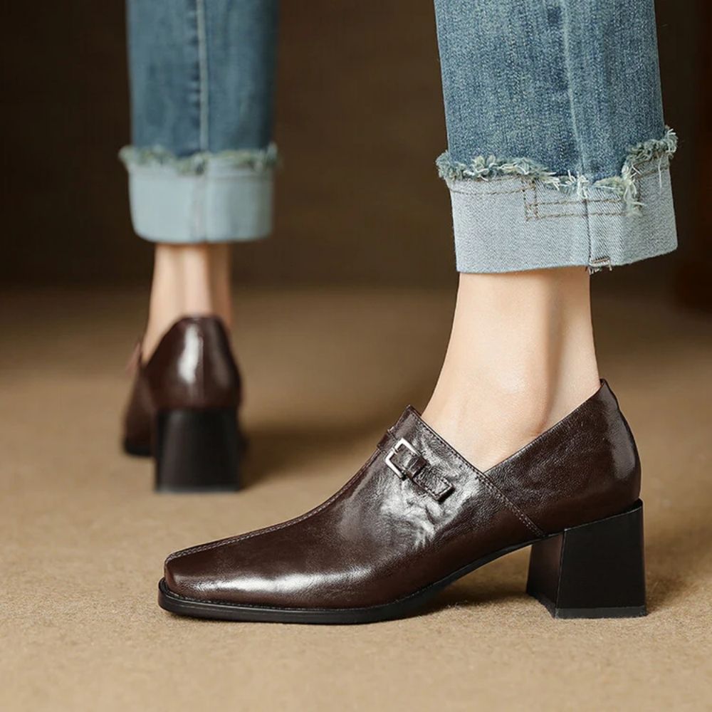 Misha – Elegante Leder Schlüpfen Mit Absatz