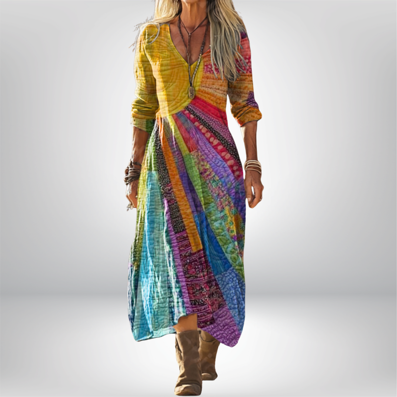 ✅Bohemian-artiges Patchwork-Muster: Das Patchwork-Streifenmuster verleiht dem Kleid einen starken Bohemian-Charakter. Jedes Panel sorgt für visuelle Tiefe und hält das Gesamtbild dynamisch. Es fällt auf, ohne dass auffällige Accessoires erforderlich sind. Das Muster bleibt aus jedem Blickwinkel ein Blickfang.