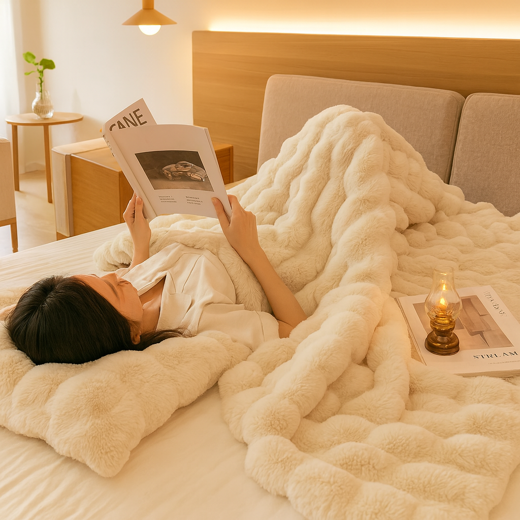 Dank ihres wendbaren Bubble-Fleece-Stils ist diese Decke funktional und dekorativ zugleich. Das dezente Vintage-Design macht sie zu einer perfekten Wahl für Einrichtung, Entspannung und Wohlfühlmomente.