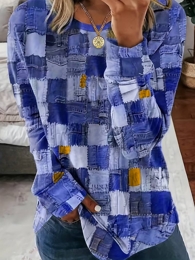 Talya - Lässiges Langarm Oberteil Mit Karomuster