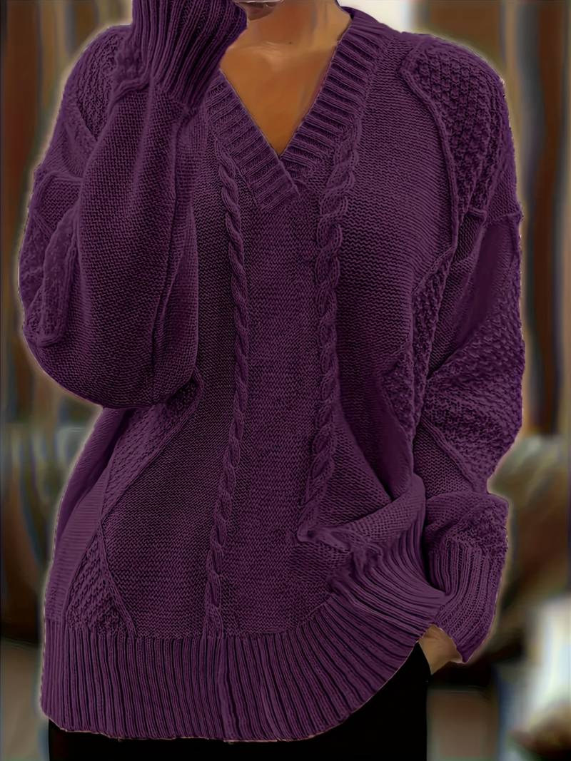 Tzvia - Lässiger Strick Pullover Mit V Ausschnitt